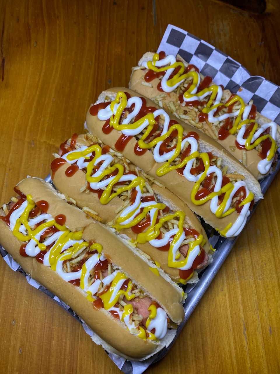 Salchicha polaca, queso gouda, papita de perro y salsas clásicas, acompañado de 180gr de crujientes papas fritas